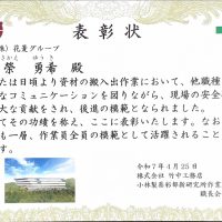 竹中工務店 小林製薬新研究所作業所 表彰状 花菱グループ…