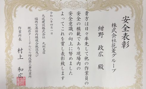 竹中工務店東京本店 報奨状 江坂